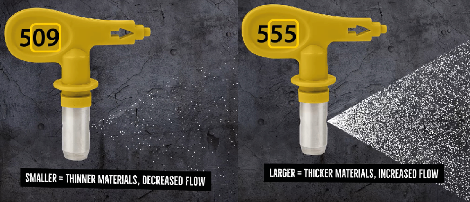 Bij Airless verfspuiten kun je veel verschillende spuittips kopen. TITAN houdt de volgende maatduiding aan: